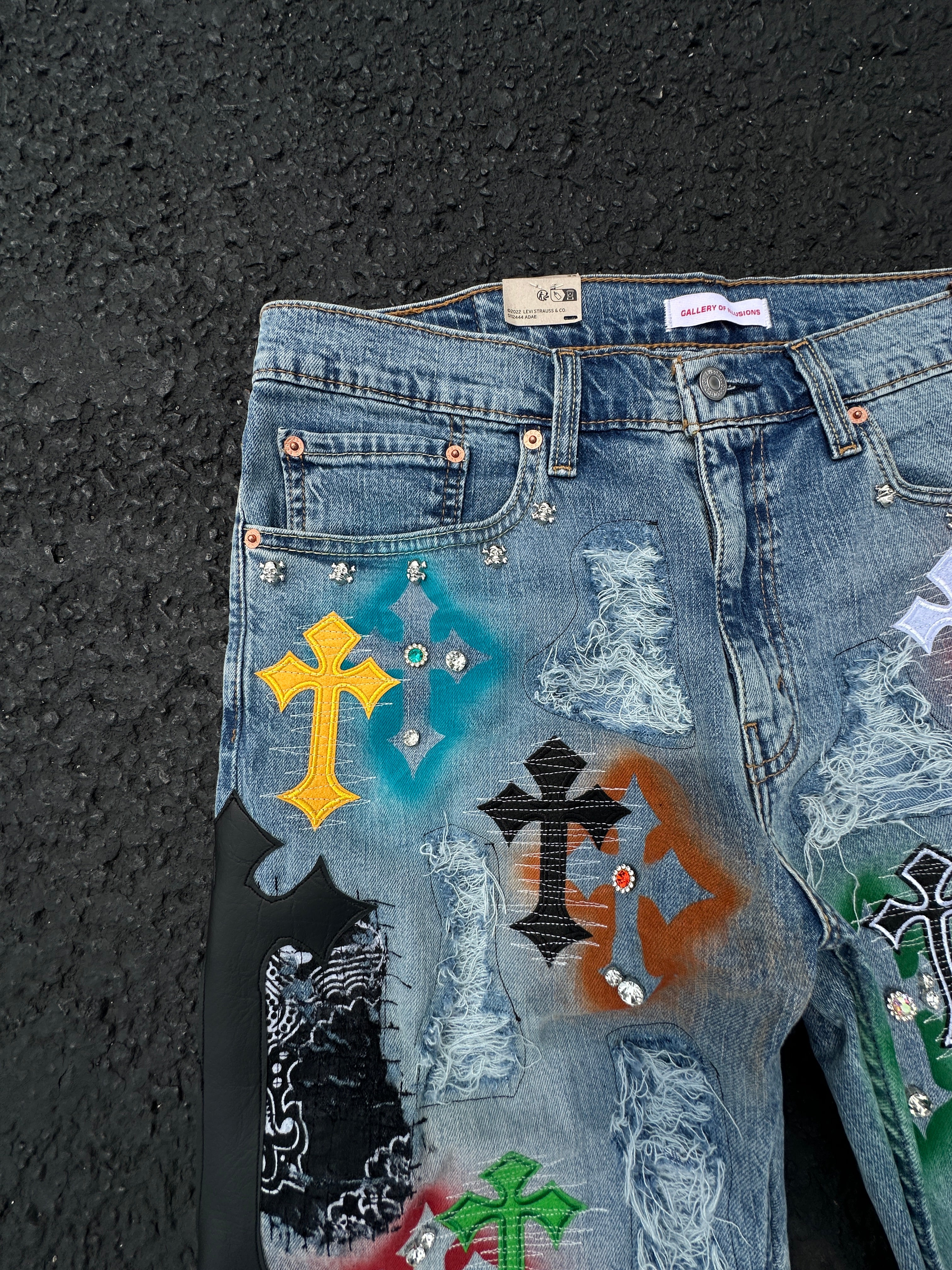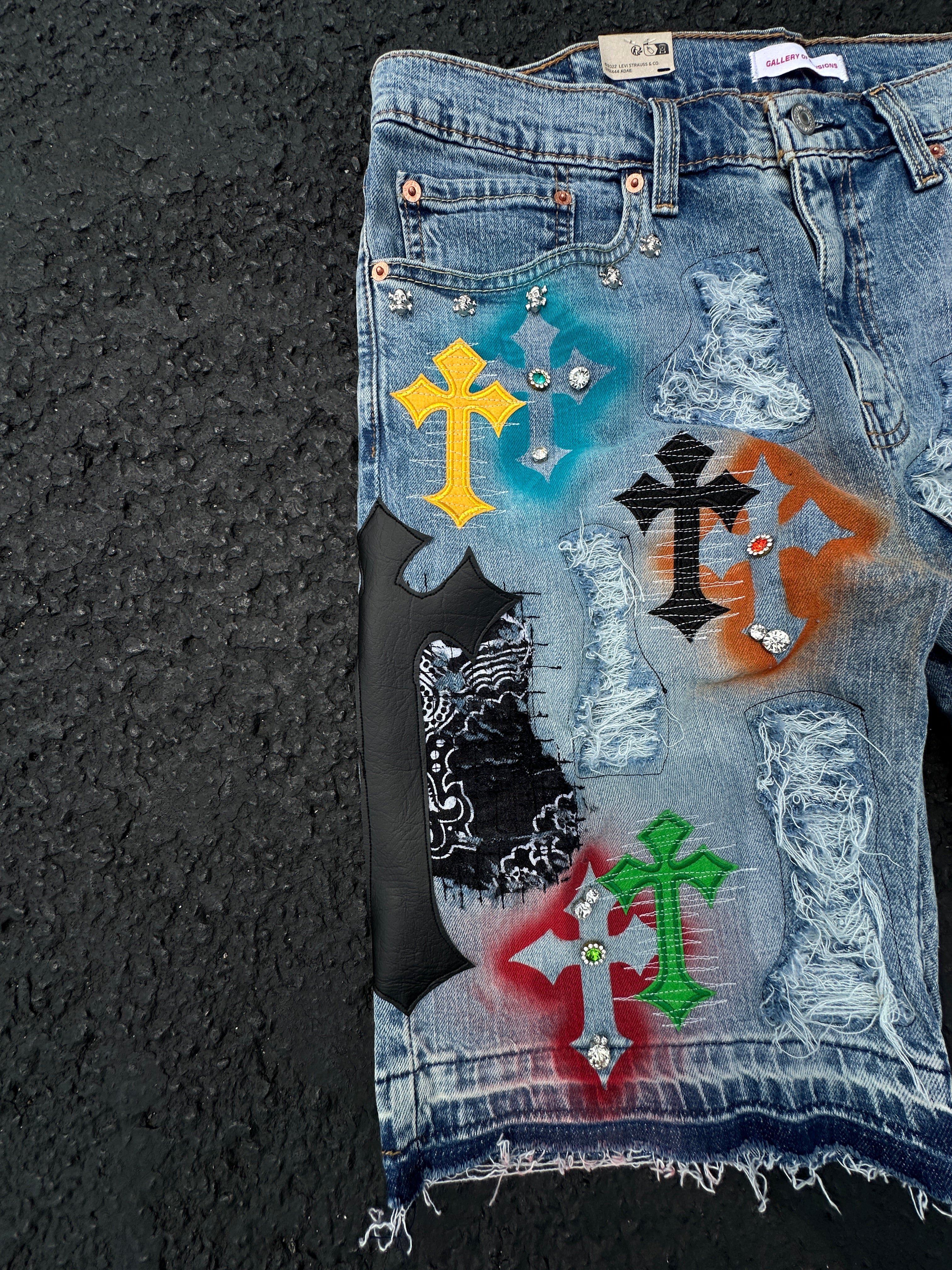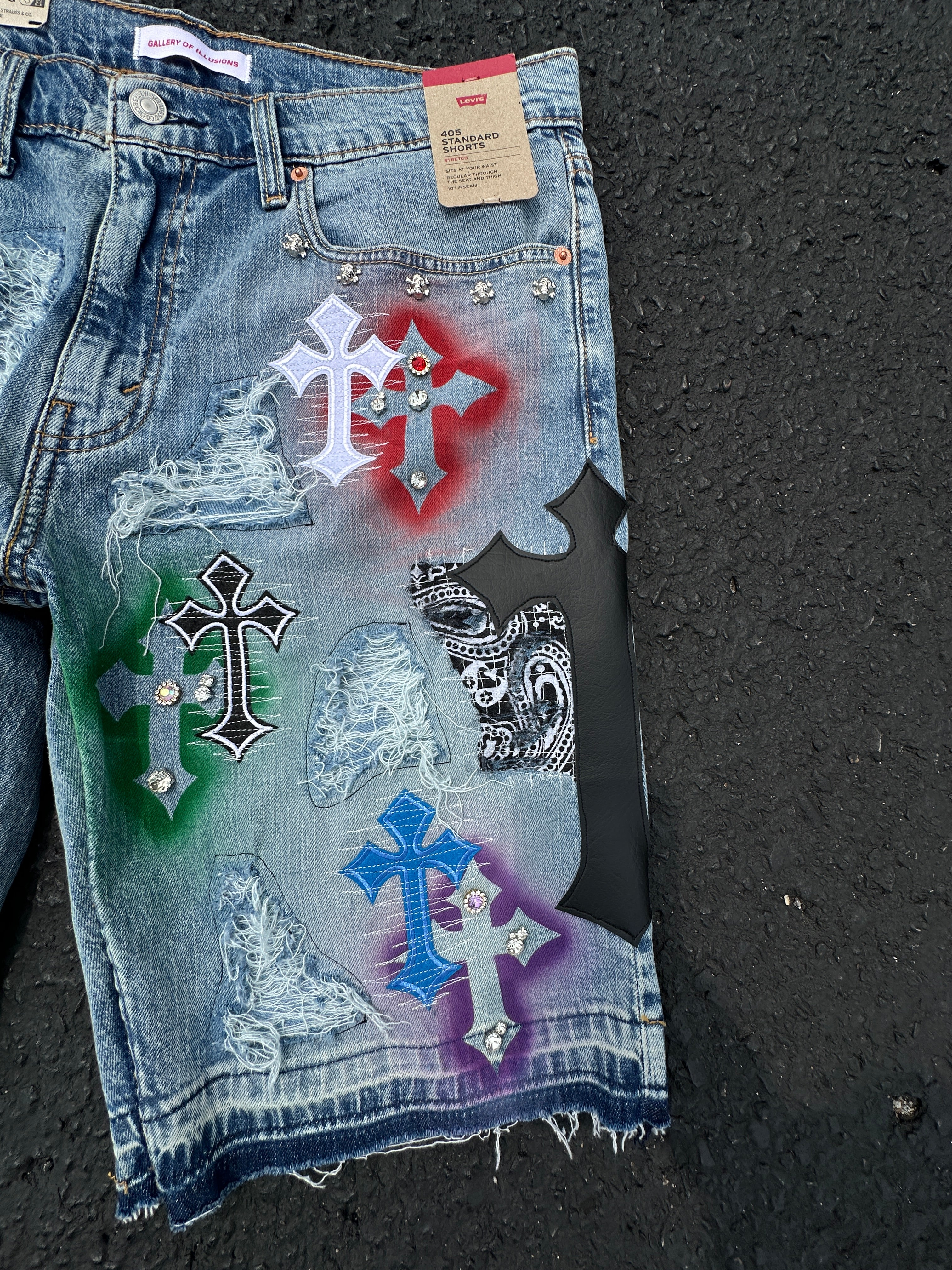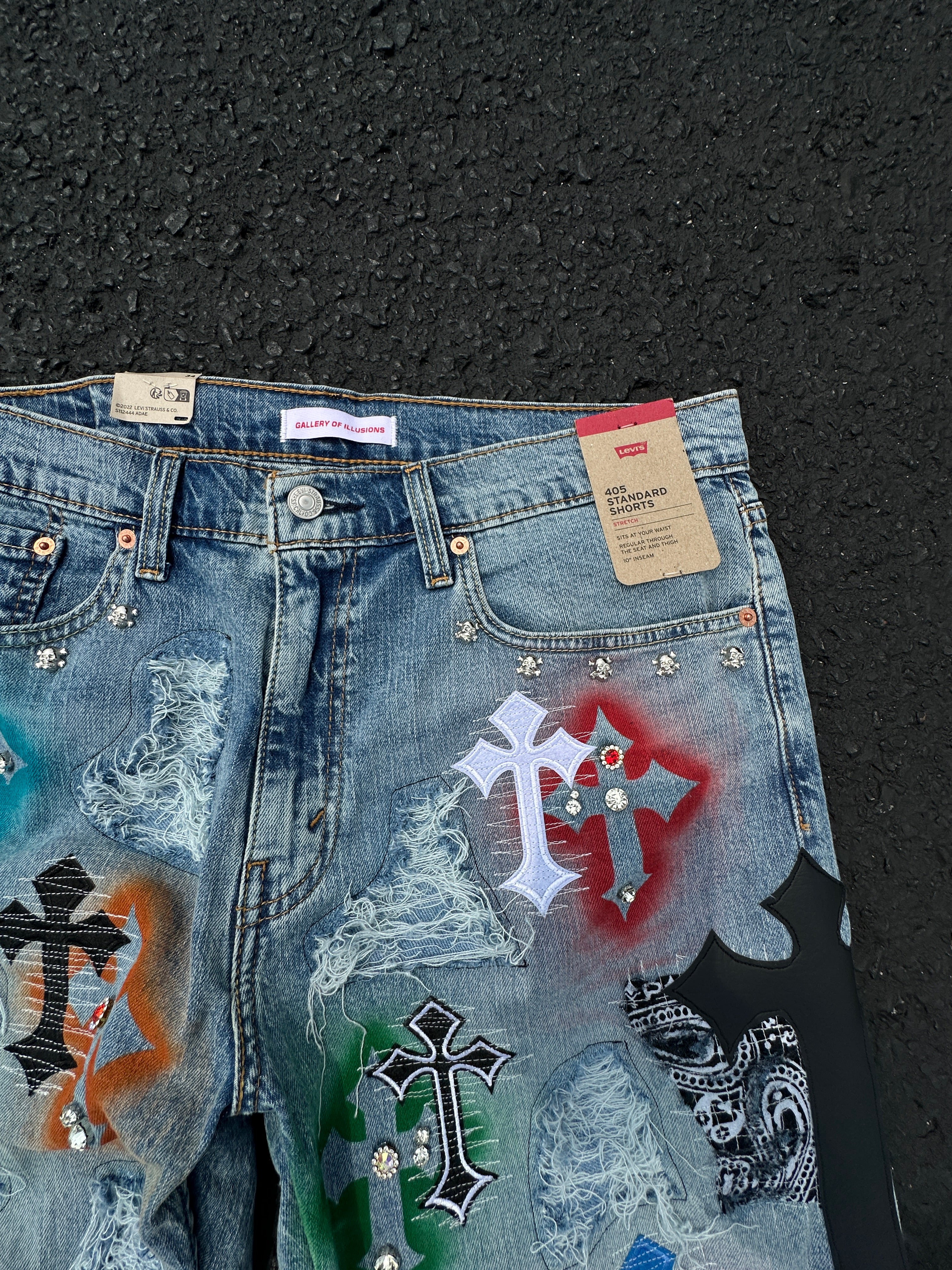 GALLERY OF ILLUSIONS MULTI CROSS DENIM JORTS (made on Levi 405) – Gallery of Illusions
